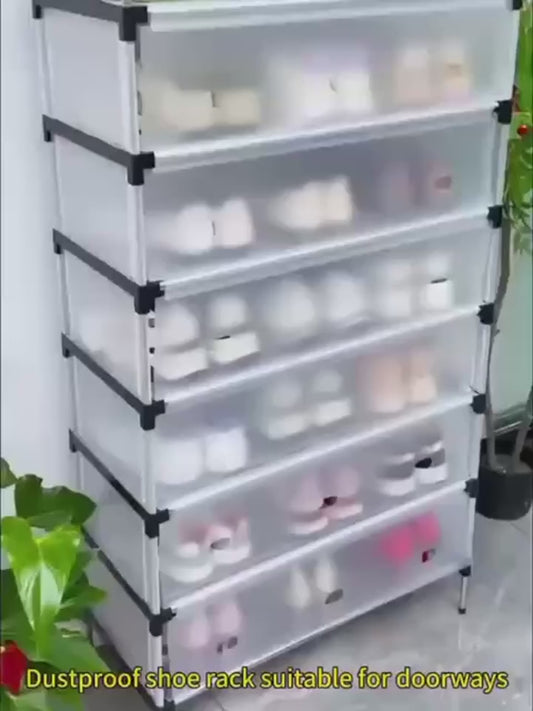 Multi Layer Dustproof Shoe Rack Organizer With Cover Foldable Plastic Shoe Storage Cabinet Is Designed...